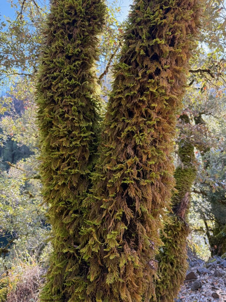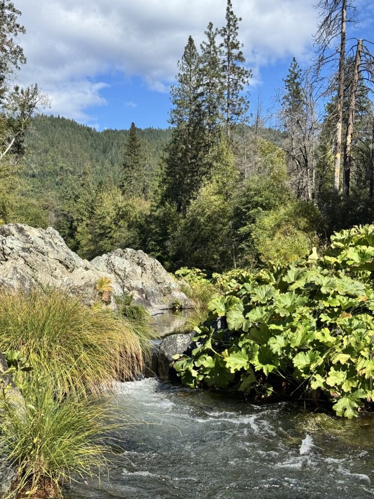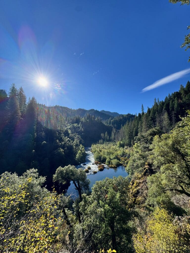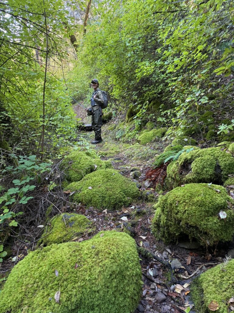 Chatterdown is a beast of a beat: a 45-minute hike through impossible beauty and multiple biomes. And boy, do we chatter down every one of them. We march through a pillow-pathed forest of ancient oaks; a sun-baked stretch of golden grass; a cool, green valley with a babbling brook; and a moss-coated overlook with the turquoise McCloud curling in and out of sight. (This last spot was a notable favorite of the late Craig Ballenger, whose memory remains at Bollibokka in high definition.)