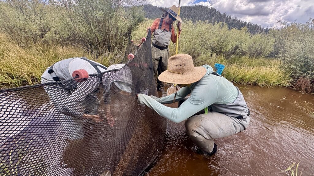 Truly, it is good in countless ways. The group of folks in this particular crew came from different backgrounds and experiences, but we were assembled because we care about a unique trout, its specific habitat, and the greater environment. Alec Leonardini coordinated and set us up for success: the entire group was split about 50/50 female and male, and our experts included Dr. Beth Chasnoff and Sabra Purdy, who both guided the effort with their extensive knowledge and know-how. While Bernard and I chose not to bring fly gear, a few team members did, and one day during the brief rest between passes, Beth, Julia, and I wandered upstream to try their best for gold. I spotted a lively pool with rising trout, signaling Beth where to drop her ant… Boom! Her first gorgeous golden on a fly was a shared delight, and doesn’t that encapsulate this project? Being in the wilderness and witnessing the landscape-level restoration that Trout Unlimited, the United States Forest Service, the California Department of Fish and Wildlife, and other partners and volunteers are achieving provides hope and reasons to celebrate when, otherwise, we might not have much to be hopeful about. As citizen scientists, we may be only a drop of water in the system, but as we know all too well, it all counts.