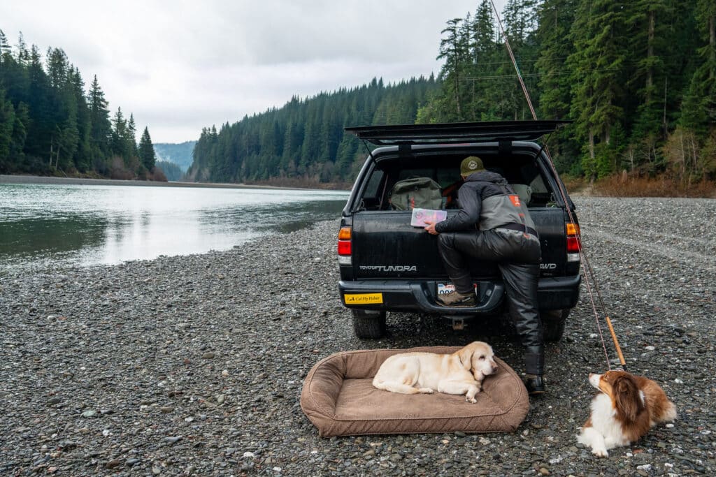 The highlight of my steelhead season came just days before I was meant to leave for a nearly two-week trip in the Amazon. My fishing partner, my now elderly Labrador, refused his breakfast. He had never done that. Looking back, it felt deliberate. So much of my fishing life has been built around terra incognita, around filling in the blank spaces on my map of California. Diesel has always been my trusty companion on nearly every adventure. Lately, though, as he has entered his teens, I have started leaving him behind and bringing him only on boat missions, using the excuse that he would be happier at home. I was beginning to act like an overprotective parent, not his friend. Admittedly, the unknown is not a great place to take a 14-year-old dog. It requires long days, sure footing, and back legs that still work. I couldn’t believe I was about to let a year of his life slip by without trying to show him a steelhead. It was time I adjusted what I was doing to accommodate him.