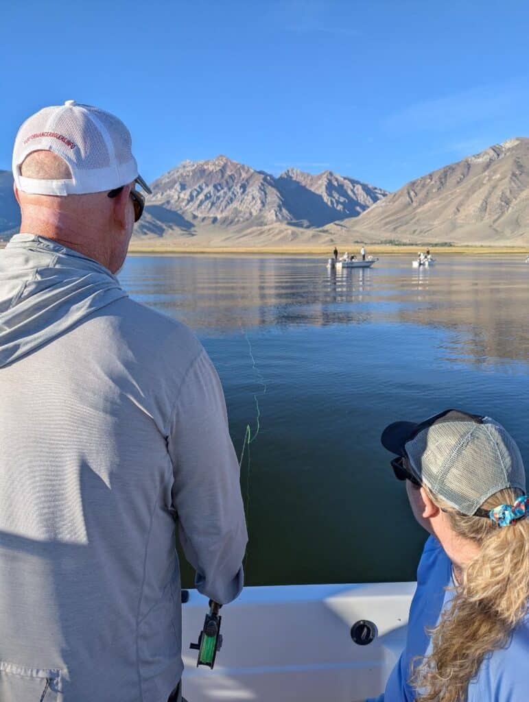 Kent’s tip for fly fishers who want to learn the lake is to hire a guide. Guides can provide up-to-date information on locations, rigging, and flies, giving anglers the information they need to plan future trips to the lake.