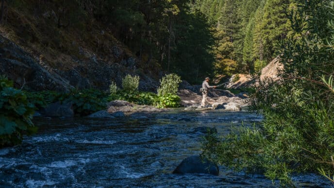 DG: I have three. One is my largest rainbow ever, caught on the Stanislaus with my client Terry. It was his first day pursuing his passion after years of recovering from surgery. Terry’s outlandish stories, foul language, generosity, and inability to use a cell phone camera made the day special. We were lucky to land the fish and get a terrible photo—not that the photo matters when that day will forever be etched into our memory.
