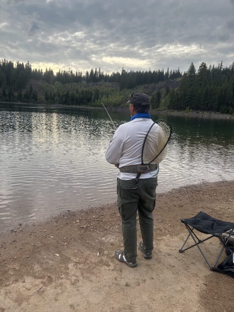 I scan the lake one last time before packing up. The trout are still rising, the day just beginning for them. I sling my bag over my shoulder and head back up the path toward camp, where La Brea will be waiting, tail thumping against the RV floor. My heart is full, my mind quiet, and I am content.