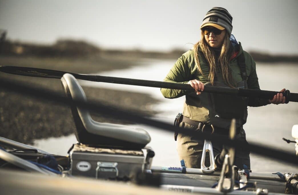 Another thing people rarely understand is just how physically demanding this work is. They see the photos—the smiling clients, the bent rods, the perfect loops—but they don’t see the hours of rowing against wind, clients weighing 150+ pounds each, and the miles of wading through uneven riverbeds. Rowing is a full-body sport and can be challenging for some women. But there are plenty of badass women who row boats every single day across the country. Wade guiding is also an option, depending on the fishery. “Walk and wade trips can offer more flexibility with fewer logistics than guiding out of a boat. I’m the one who handles the school drop-offs and pick-ups, and needs to be available for things,” says Southern Oregon guide Sha Orton.