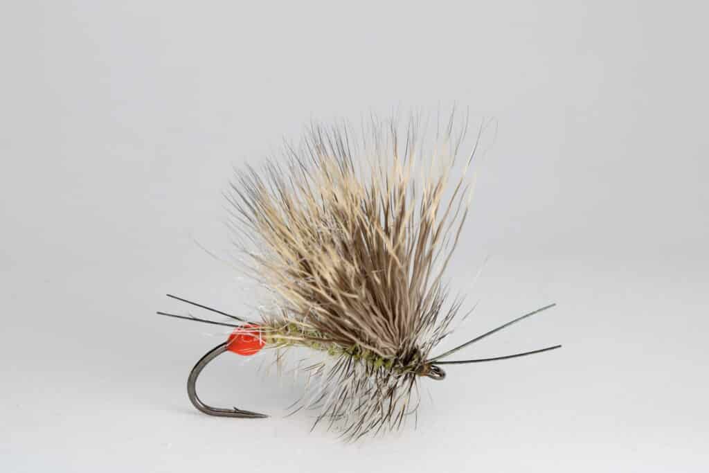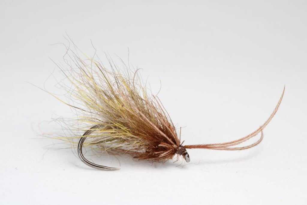 Butler’s Caddisfaction Caddis dry uses a composite dubbing loop of snowshoe rabbit and deer hair to achieve both a buggy look and buoyancy that survives fish slime.