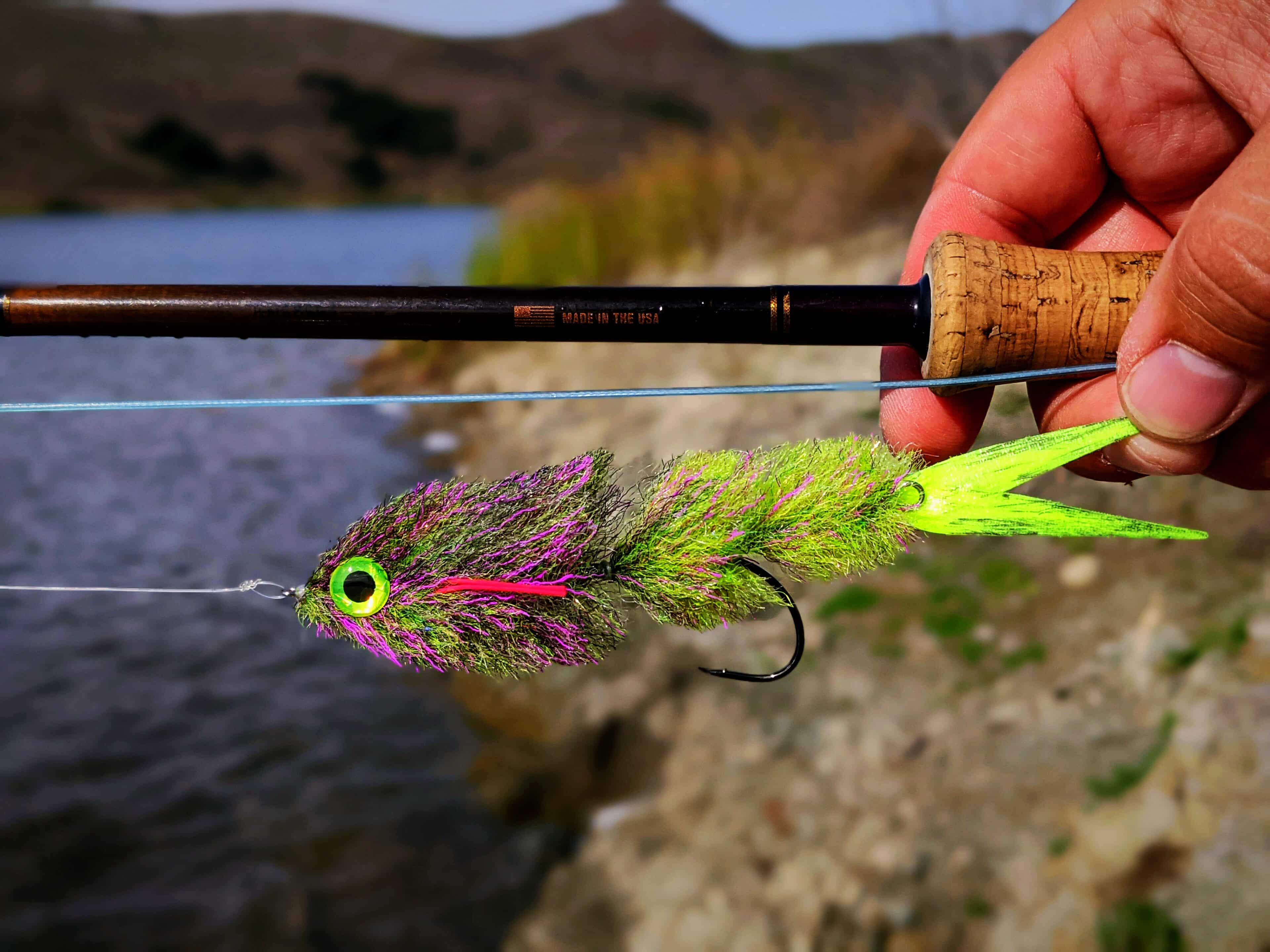 When stocking a good fly box for bass, you’ll want a good selection of leeches and worm-style flies, from a half inch long to six inches or longer for the larger worm-style flies. Baitfish patterns like a Clouser Minnow work great, but I prefer unweighted flies for most bass fishing because I can stall the fly on a pause, which is when a lunker bucketmouth will usually strike. Flies tied with a lot of bucktail or deer hair, like the Drunk and Disorderly, Deceivers, and Game Changers—sized to match the target baitfish—are excellent for bass. Most lakes in California have threadfin shad or similar baitfish in the 2- to 4-inch range, which makes a good starting point for matching the hatch.