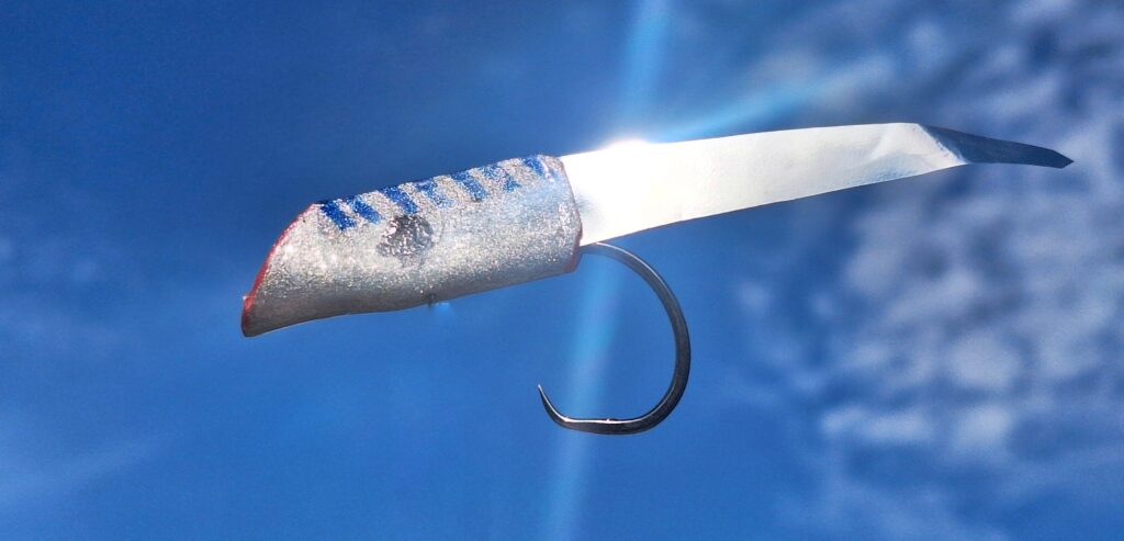 If you tie flies, there are a couple of patterns that reflect a lot of light. The first is the Castblaster, a spinning tube fly made from shiny aluminum duct tape. You can find details on how to make it in the August 2023 “Catchy Ideas” column.