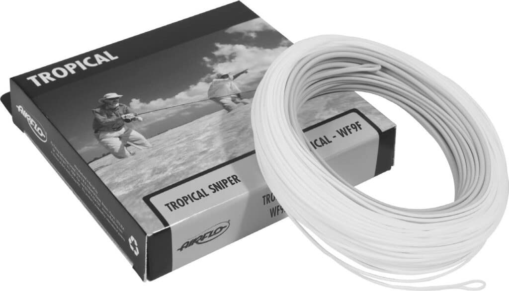 Airflo’s new Tropical Sniper is a warmwater version of the aggressively tapered integrated-head lines that lots of folks are fishing in place of standard weight-forward tapers or separate shooting heads. The belly and front taper are only 26 feet long, with an abrupt 2-foot back taper so line mass is pushed forward for quick rod loading and for turning over big flies. The 120-foot-long line is “ridged” for low-friction guide contact and built on a lowstretch braided core that resists tangling. There’s a floating version with a gray head and bright yellow integrated shooting line and another version with a clear 12-foot intermediate sinking tip and the same shooting line. Both Snipers feature welded loops at either end. They’re available in weight-forward 8-weights to 12-weights (which is to say 210-grain to 380-grain head weights) and are priced at $79.95.