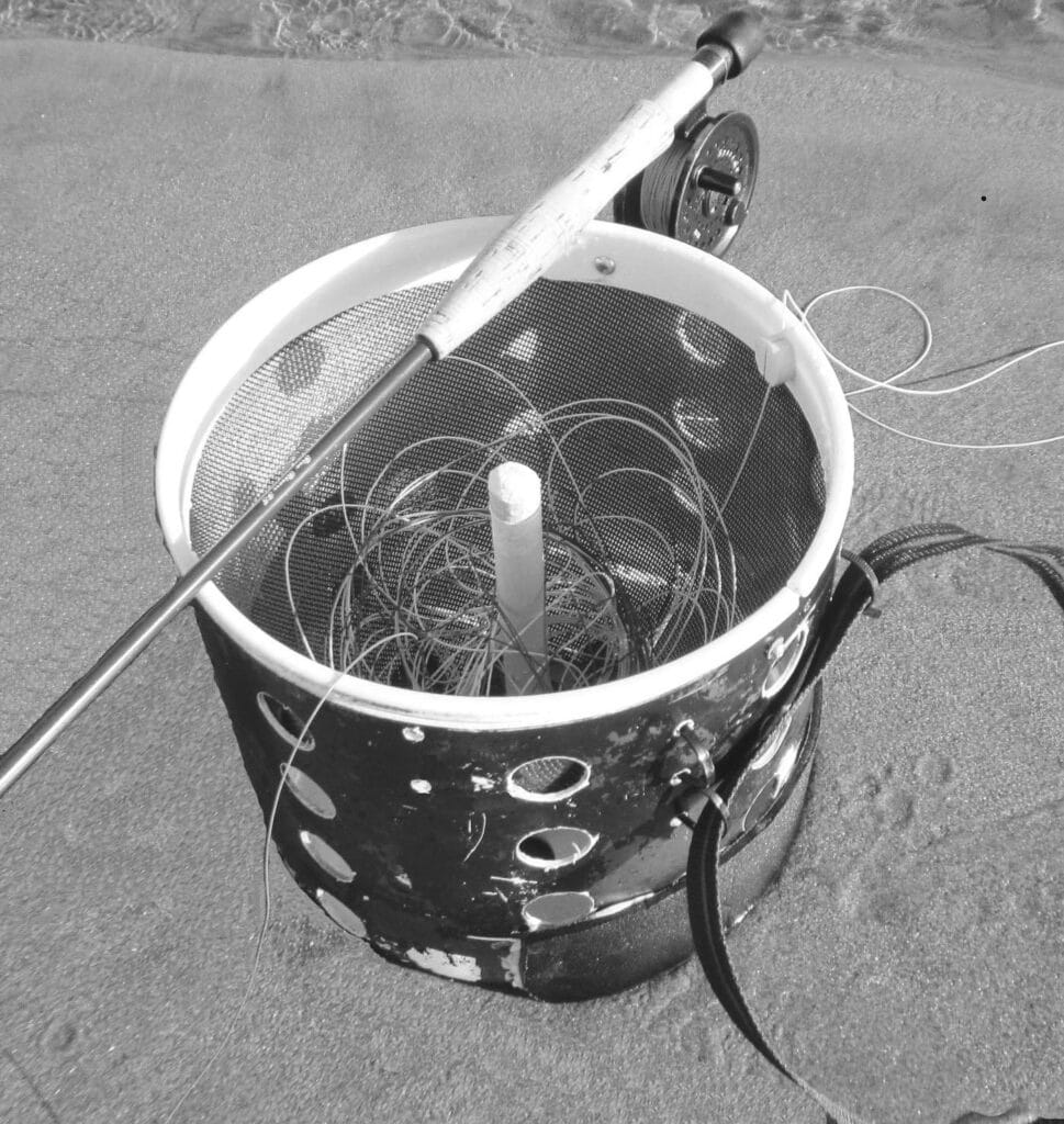 Fabric baskets have been around for quite some time. They are light and packable, and for freshwater fly fishers, they are probably ideal. Unfortunately, the same cannot be said for their utility in the surf. They tend to have one major flaw: flexibility. Nothing tangles a fly line more quickly than waves smashing into a basket and throwing the line into a jumble. The other problem with fabric baskets is they tend to get wet and droopy, at which point they spill line into the water. No surf-zone fly fisher I know has used a fabric basket for more than one trip.