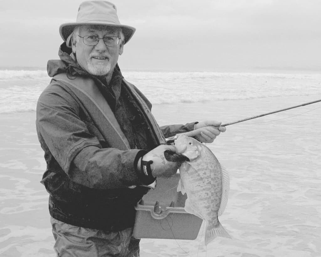 Back in the 1980s, the majority of fly fishers who ventured into Monterey Bay’s suds did so without a stripping basket. When I say “the majority,” I mean the half dozen or so people I met somewhat regularly. Fly fishing the surf was not a popular sport back then. These anglers would strip the line carefully into the water using currents to pull it away from their legs. The masters of this t’ai chi–like art are Ken Hanley and Jay Murakoshi. Watching these two guys work the surf is quite a sight. They snap out casts to the edges of rips, troughs, and seams, and during their clinical retrieves, their arms move with the grace of a Las Vegas blackjack dealer. For many years, this dynamic duo taught hundreds of anglers how to fly fish the surf zone effectively without a stripping basket.